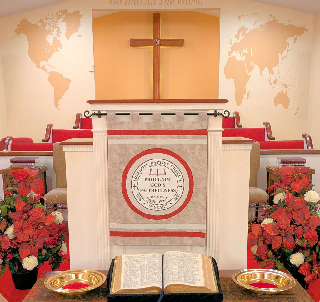 The Primary Mission of Freedom Baptist Church is to Bring Glory and Honor to its Head, Jesus Christ, through a Balanced Ministry of Worship, Preaching and Teaching of the Word, Edifying the Saints, Caring for the Needs of Others, and Fulfilling the Great Commission.