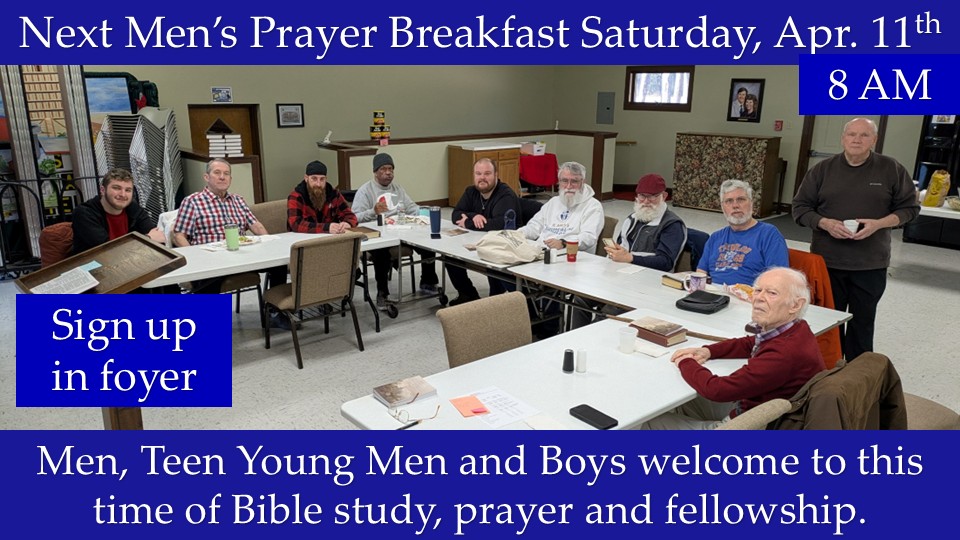 Men of all ages are welcome to this time of breakfast, Bible study, prayer, and fellowship. This month’s book will be Your Local Church and Why It Matters. If you would like more information, please contact Pastor Bill @ Pastor Bill.